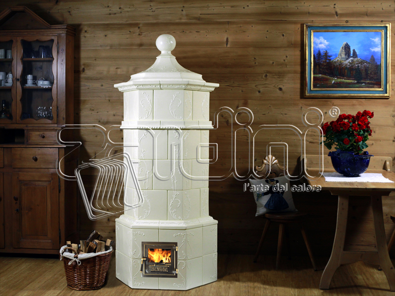 Stufa ceramica ad accumulo di calore. Dipinta e decorata a mano.